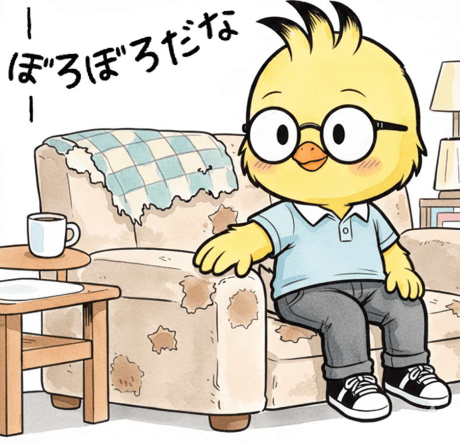 ソファカバーをかけてもボロを隠しきれず、「もう限界……買い替えどき!」と、やっと重い腰を上げたのでした。