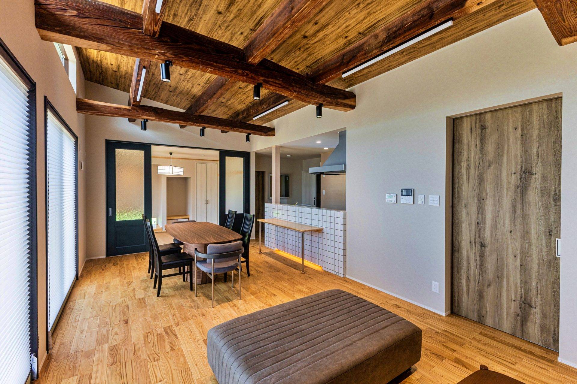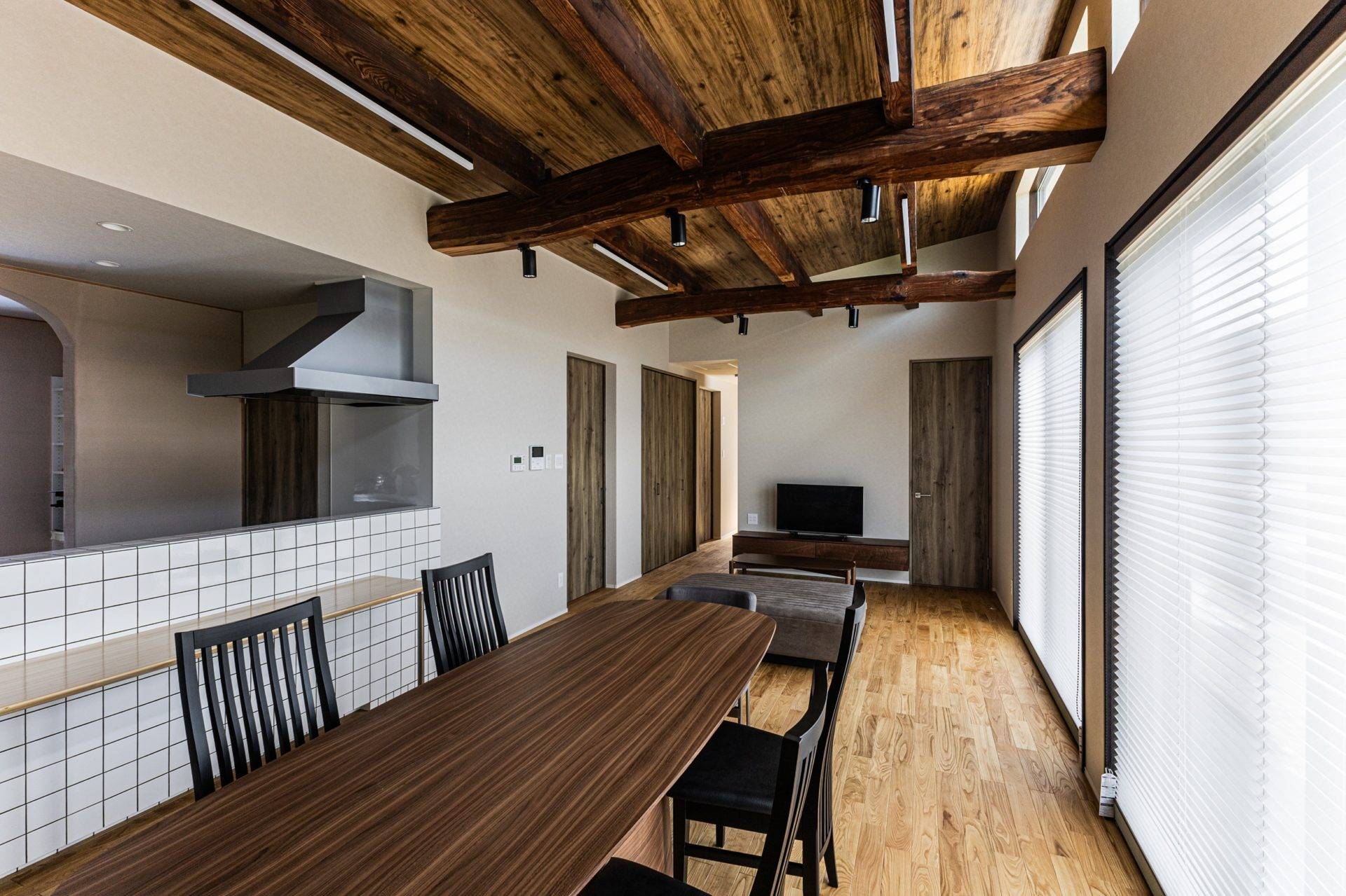 せっかくならば、これからの暮らしの風景の一部として、いつも身近に感じてほしい。そんな想いを込めて、ご家族皆が集うリビングの天井に、思い出の”太鼓梁”を架けました。この梁を見上げるたびに、以前の家での思い出話が溢れてくる皆様の笑顔は、私たちにとっても何よりの喜びです。